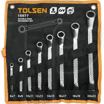 Bộ chìa khóa vòng-vòng Tolsen 15077 gồm 8 cờ lê với 8 kích cỡ khác nhau, dao động từ 6mm đến 22mm. Bộ sản phẩm còn có túi đựng được sắp xếp khoa học với kích thước của từng sản phẩm. Túi gọn gàng, dễ mang theo. Tay cầm của từng loại cờ lê chắc chắn cho thao tác nhanh gọn. Màu kim loại sáng, dễ nhìn thấy. Bộ sản phẩm không chiếm quá nhiều diện tích nên có thể dễ dàng cho việc mang theo sử dụng hoặc cất gọn trong hộp đồ nghề.