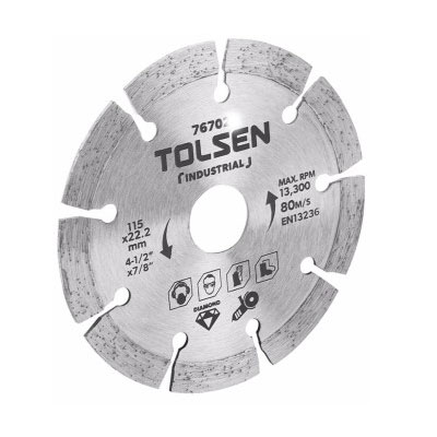 Sản phẩm đĩa cưa, cắt vật liệu dạng bo tròn TOLSEN 76700 là một mẫu thiết kế của dòng sản phẩm đĩa cắt đa năng mới nhất, thích hợp trong việc cắt các bề mặt vật liệu như gạch sàn, kim cương cùng nhiều loại bề mặt vật liệu khác…