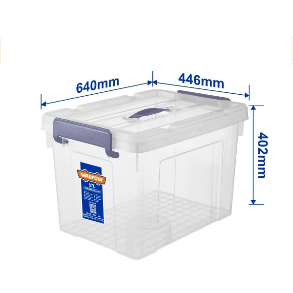 Công cụ chứa đồ WTB2390 của thương hiệu Wadfow là giải pháp lý tưởng cho các thợ xây dựng, kỹ sư và những người yêu thích DIY, muốn có một sản phẩm chắc chắn, hiệu quả và thuận tiện. Với dung tích 87L và chất liệu 100% polypropylene, sản phẩm này không chỉ bền bỉ mà còn dễ dàng vệ sinh. Kích thước hợp lý với 640*446*402mm giúp bạn dễ dàng di chuyển và sắp xếp mà không gặp trở ngại nào. Điều đặc biệt là nắp được thiết kế với tay cầm chắc chắn, giúp việc đóng mở trở nên dễ dàng hơn, an toàn thêm trong quá trình sử dụng.