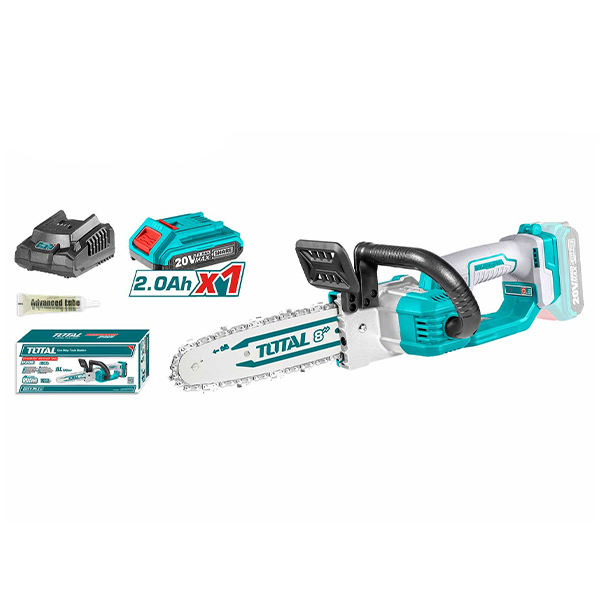 Sản phẩm đi kèm đầy đủ phụ kiện, bao gồm một dây xích, một thanh cưa, và cả chai nhớt 15ml giúp bảo trì và kéo dài tuổi thọ cho máy. Với pin 2.0Ah và bộ sạc, bạn có thể dễ dàng sử dụng và sạc lại bất cứ khi nào cần thiết. Máy cưa xích Total TGSLI20851 không chỉ là một lựa chọn kinh tế mà còn mang lại hiệu quả công việc cao, đó là lý do tại sao bạn nên lựa chọn sản phẩm này cho những nhu cầu cá nhân hoặc công việc chuyên nghiệp của mình.